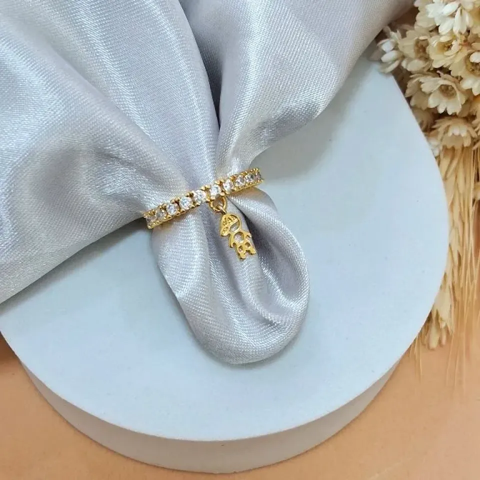 Anel gota verde agua com cravejado...