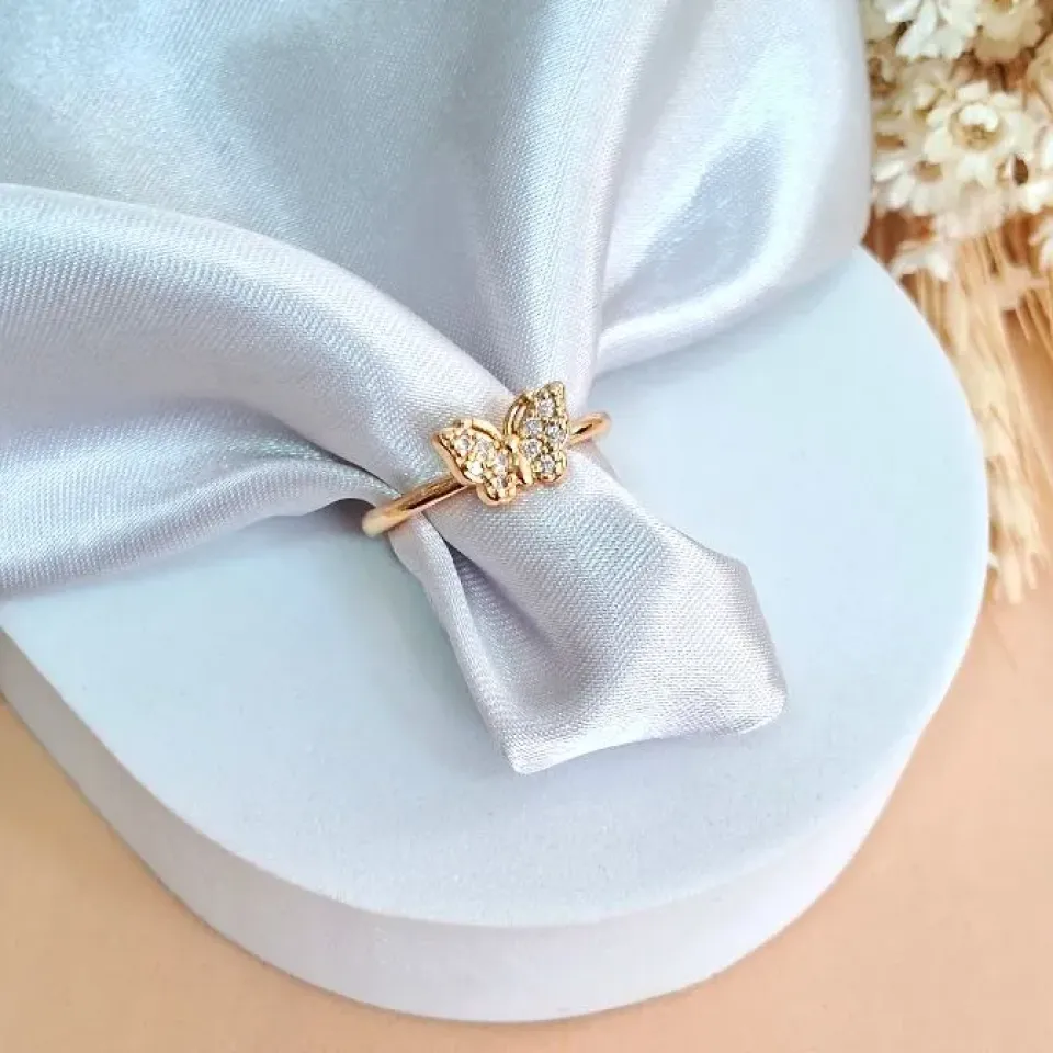 Anel gota verde agua com cravejado...