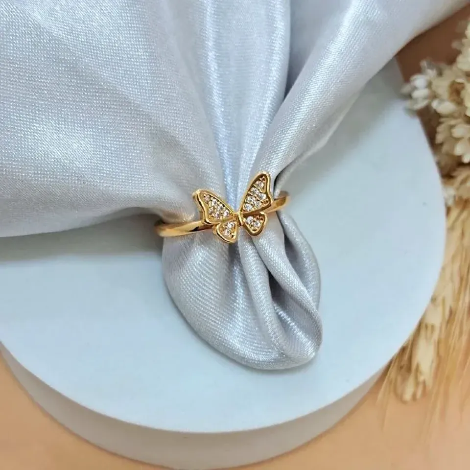 Anel gota verde agua com cravejado...