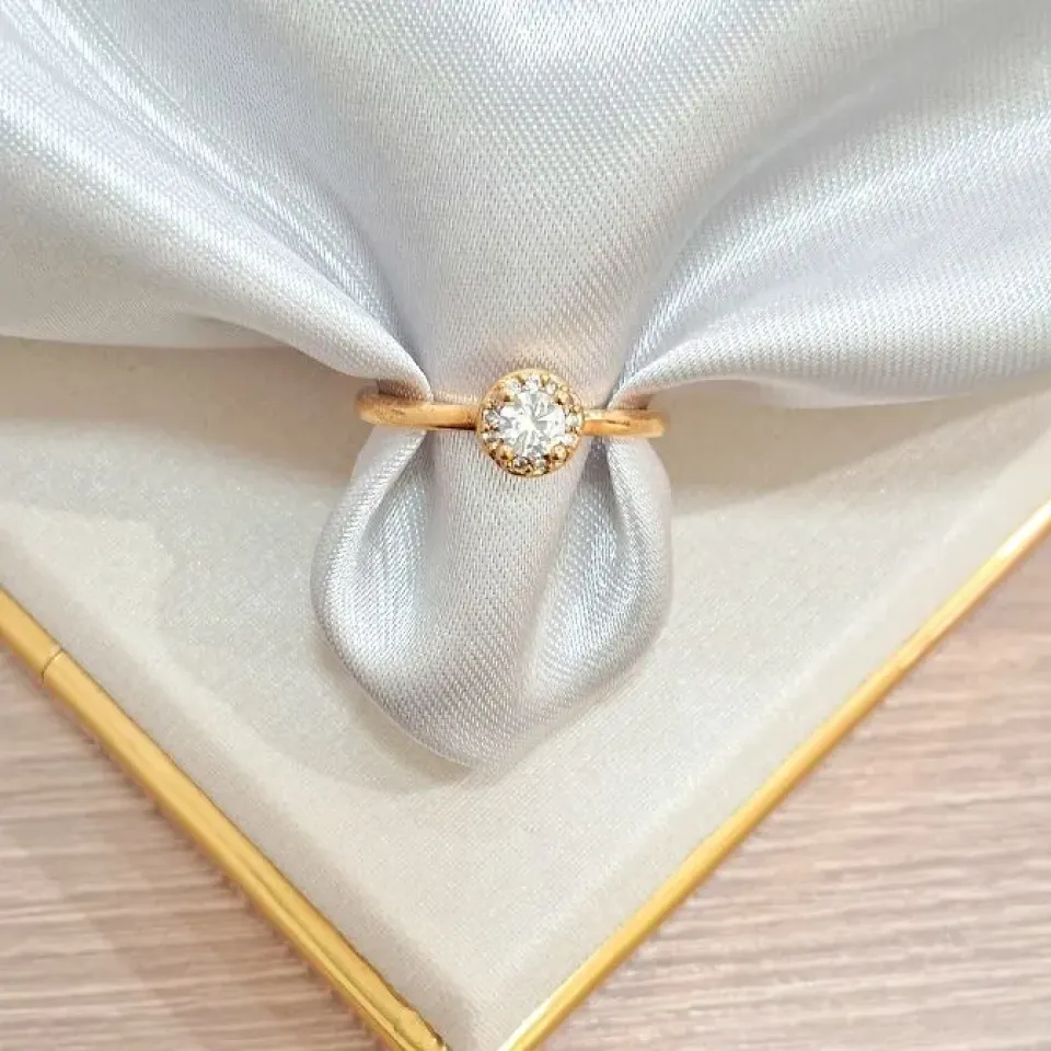 Anel gota verde agua com cravejado...