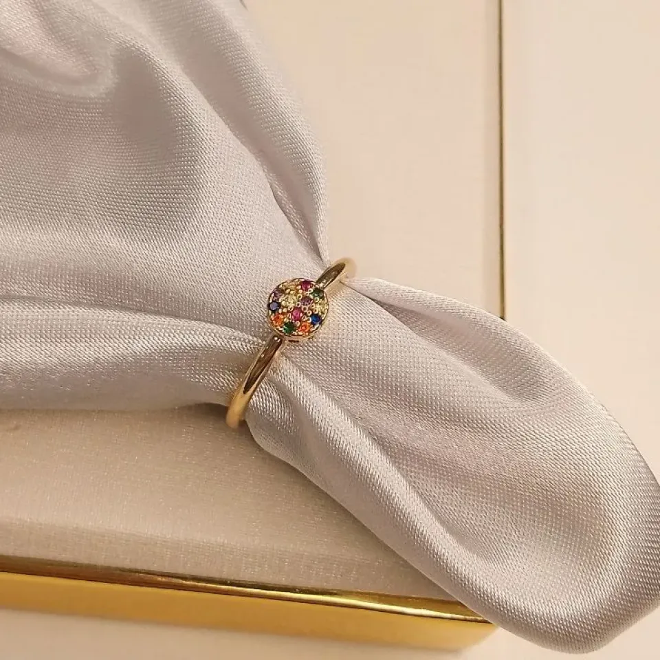 Anel gota verde agua com cravejado...