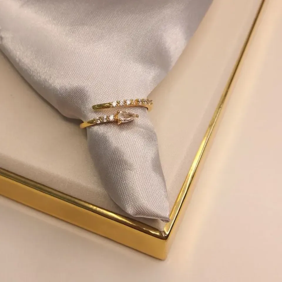 Anel gota verde agua com cravejado...