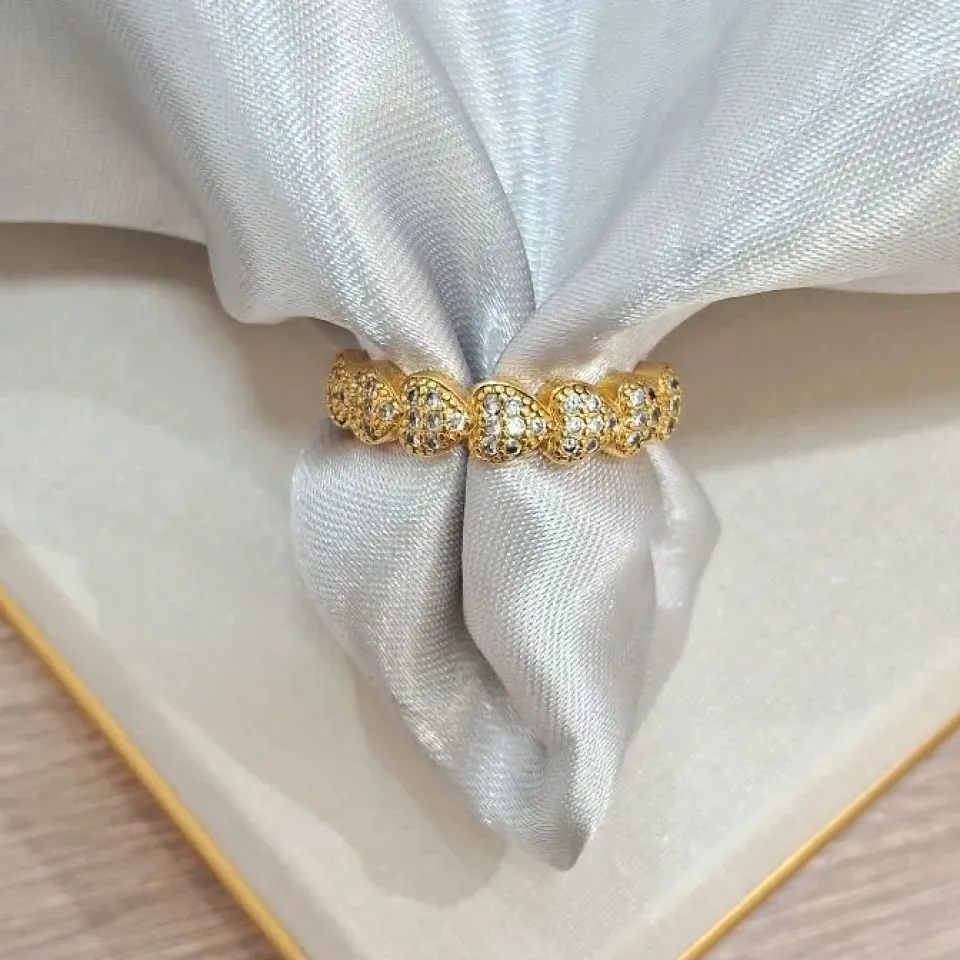 Anel gota verde agua com cravejado...