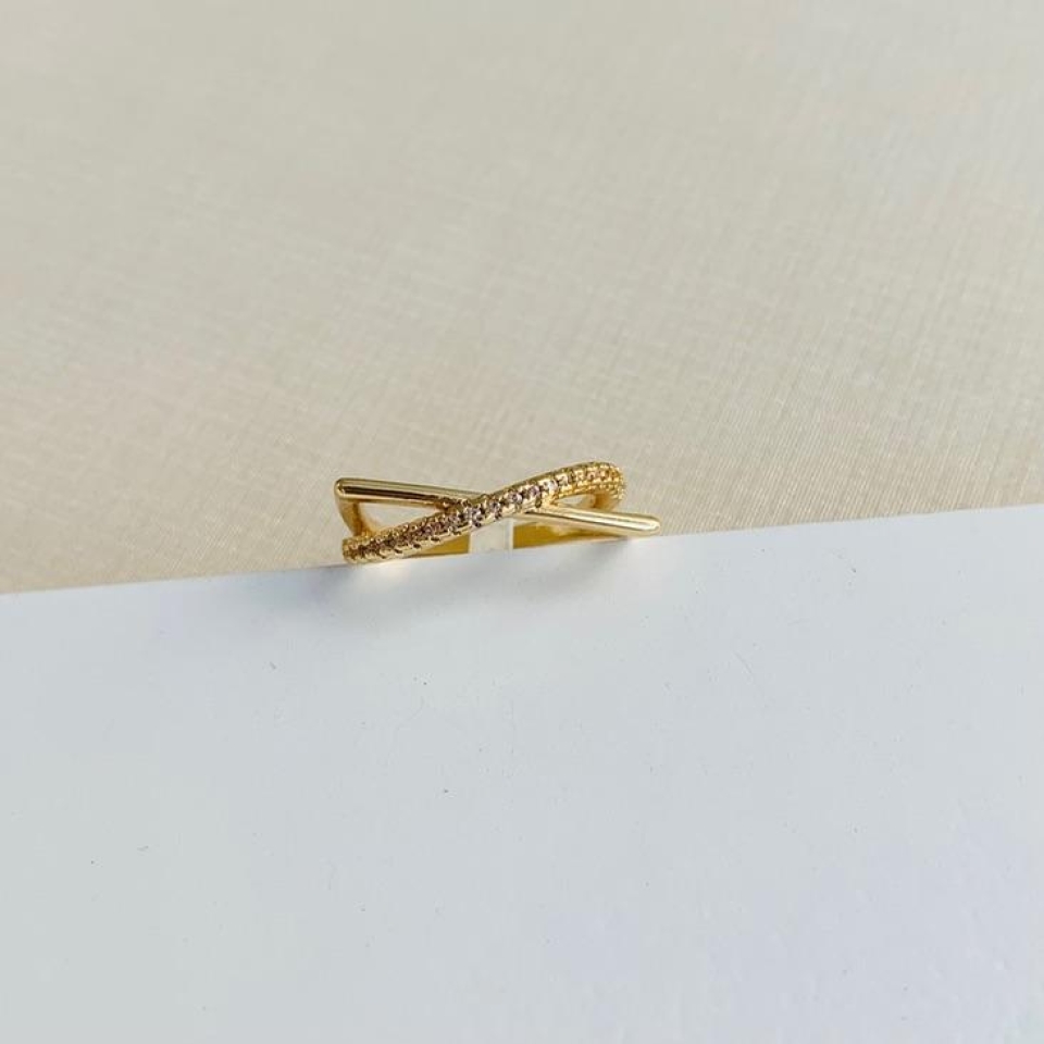 Anel gota verde agua com cravejado...