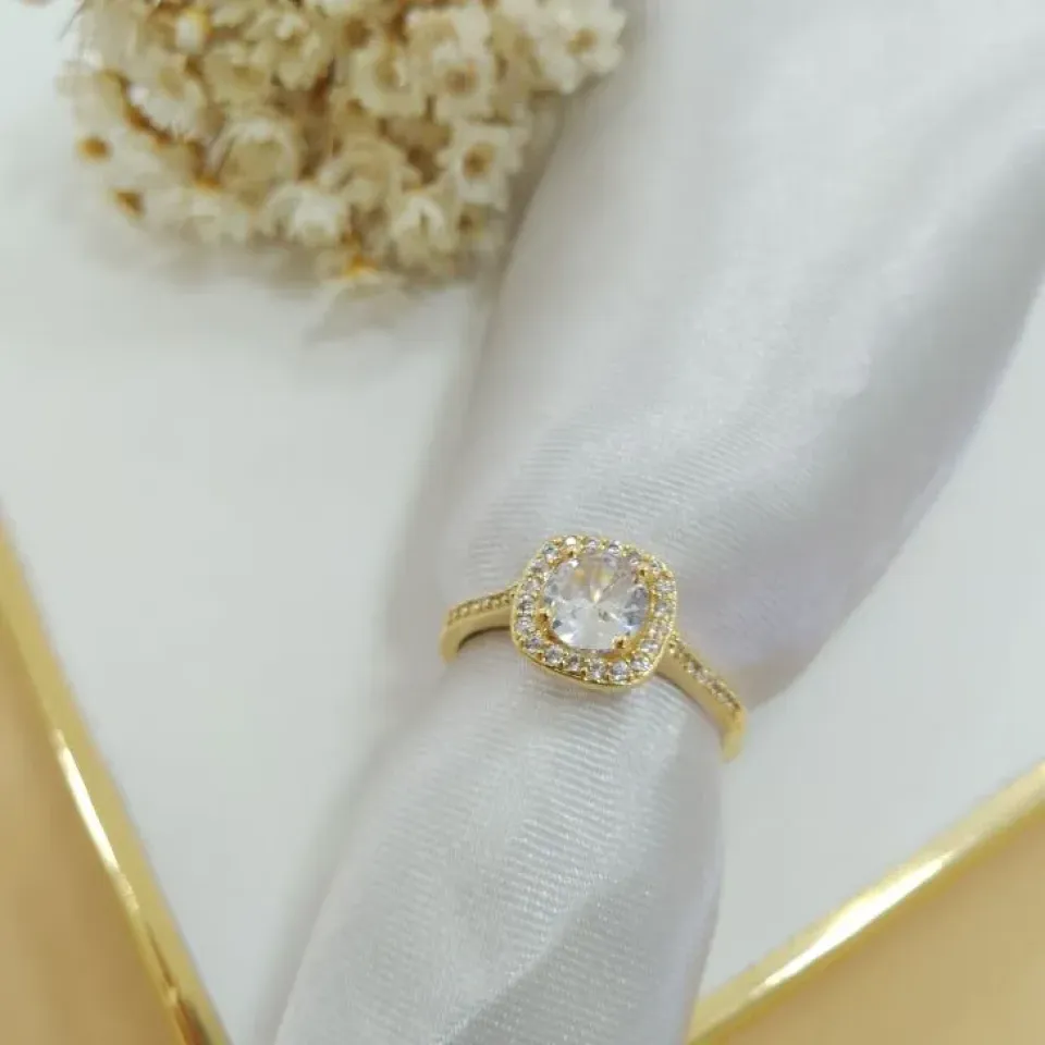 Anel gota verde agua com cravejado...