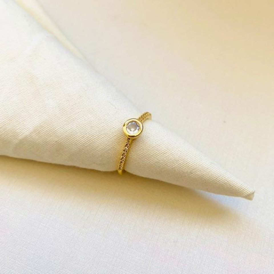 Anel gota verde agua com cravejado...