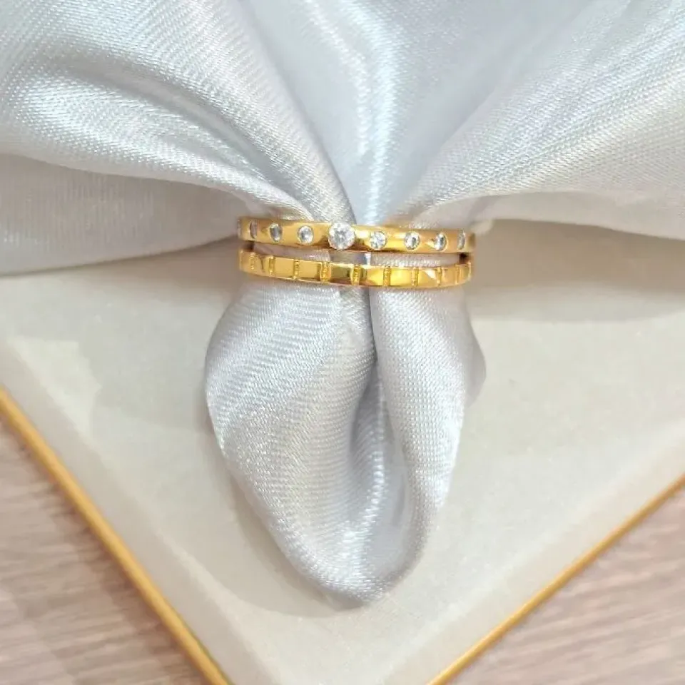 Anel gota verde agua com cravejado...