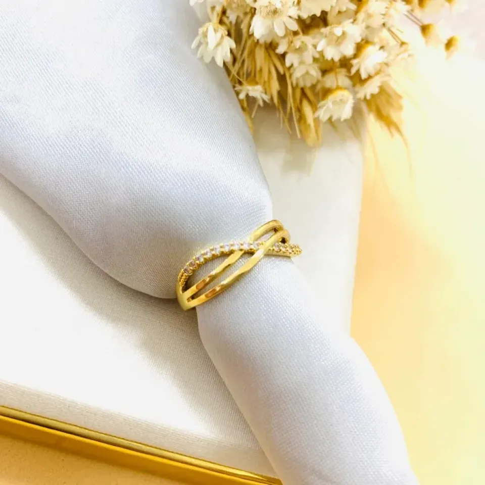 Anel gota verde agua com cravejado...