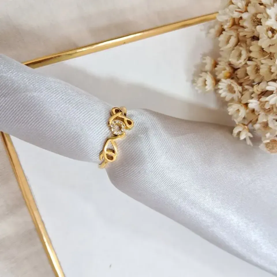Anel gota verde agua com cravejado...