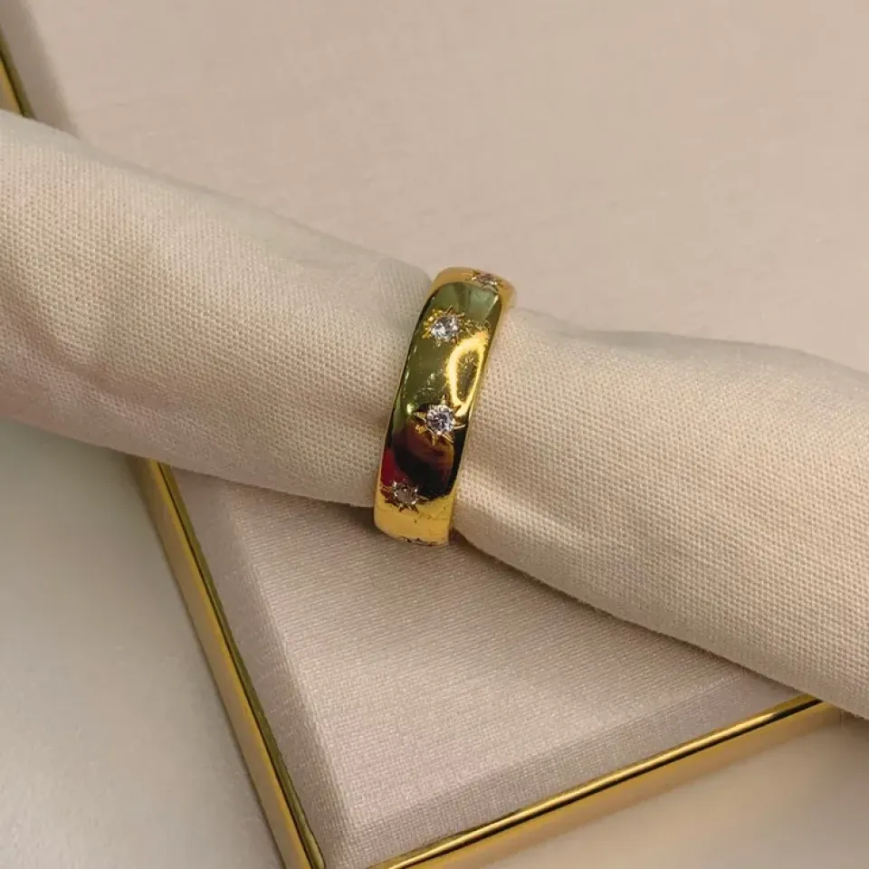 Anel gota verde agua com cravejado...