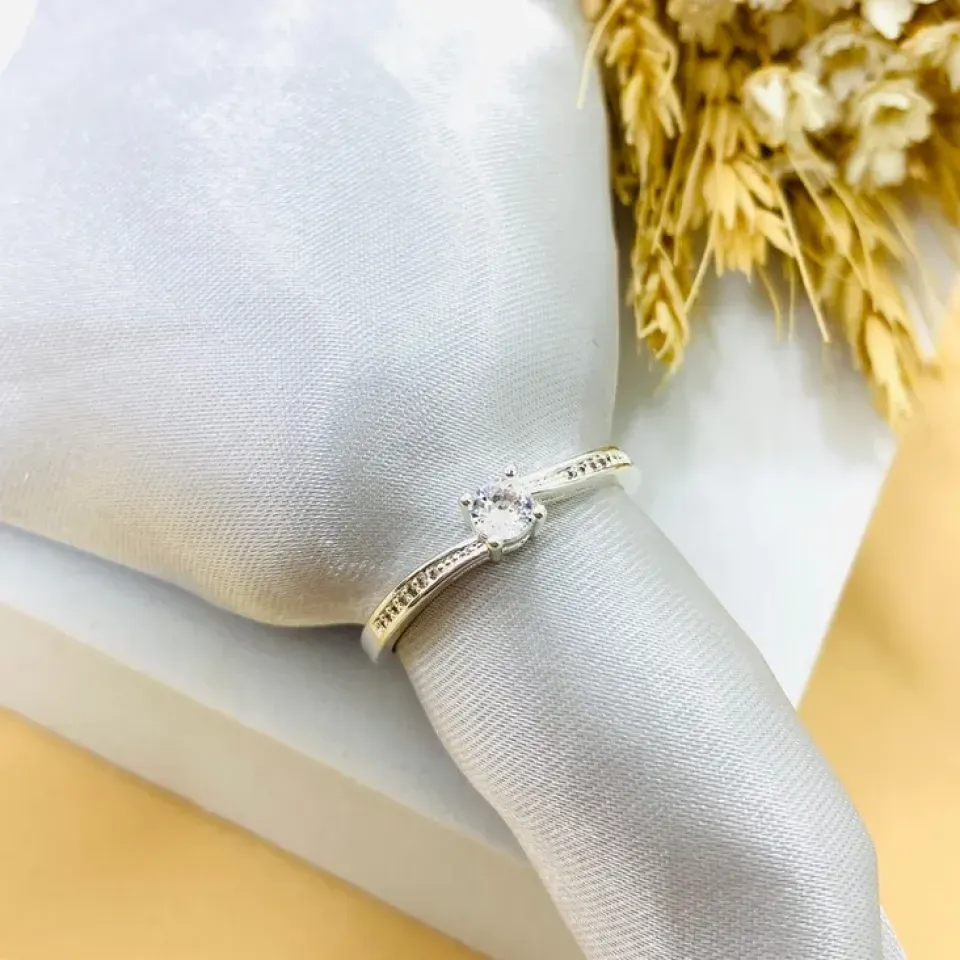 Anel gota verde agua com cravejado...