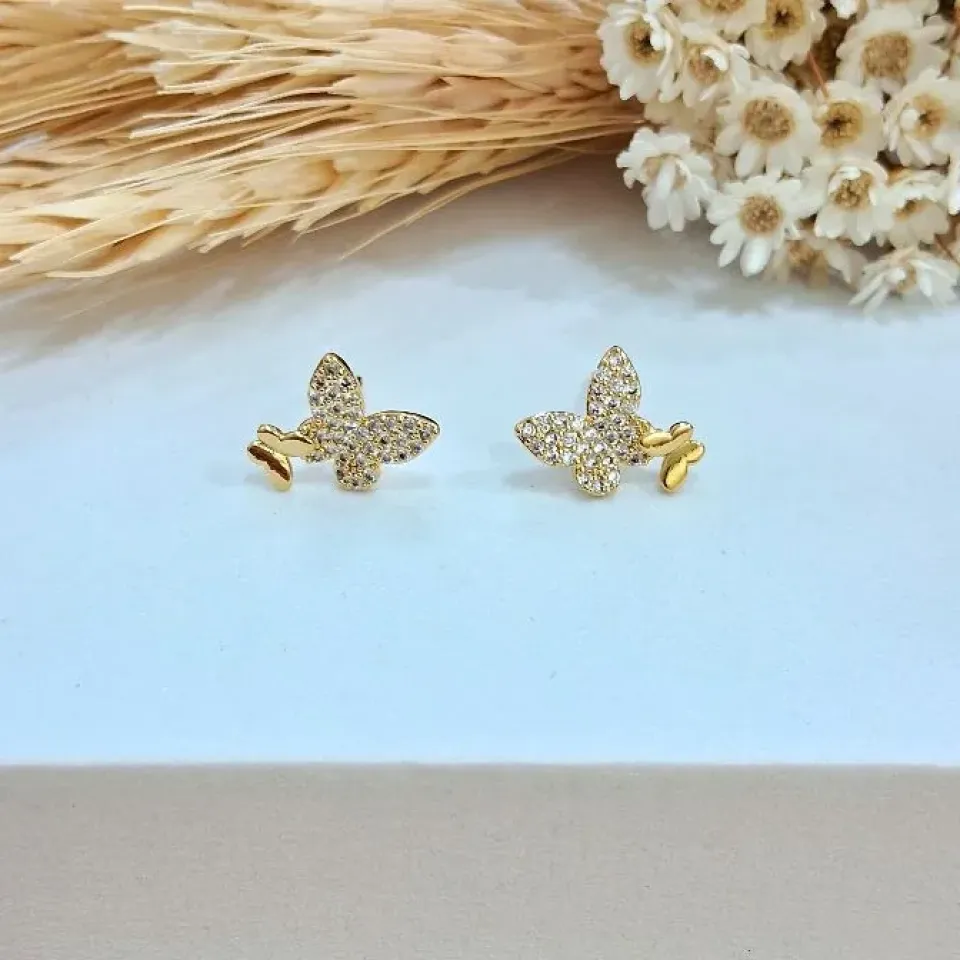 Brinco flor em zircônia com pérola shell...