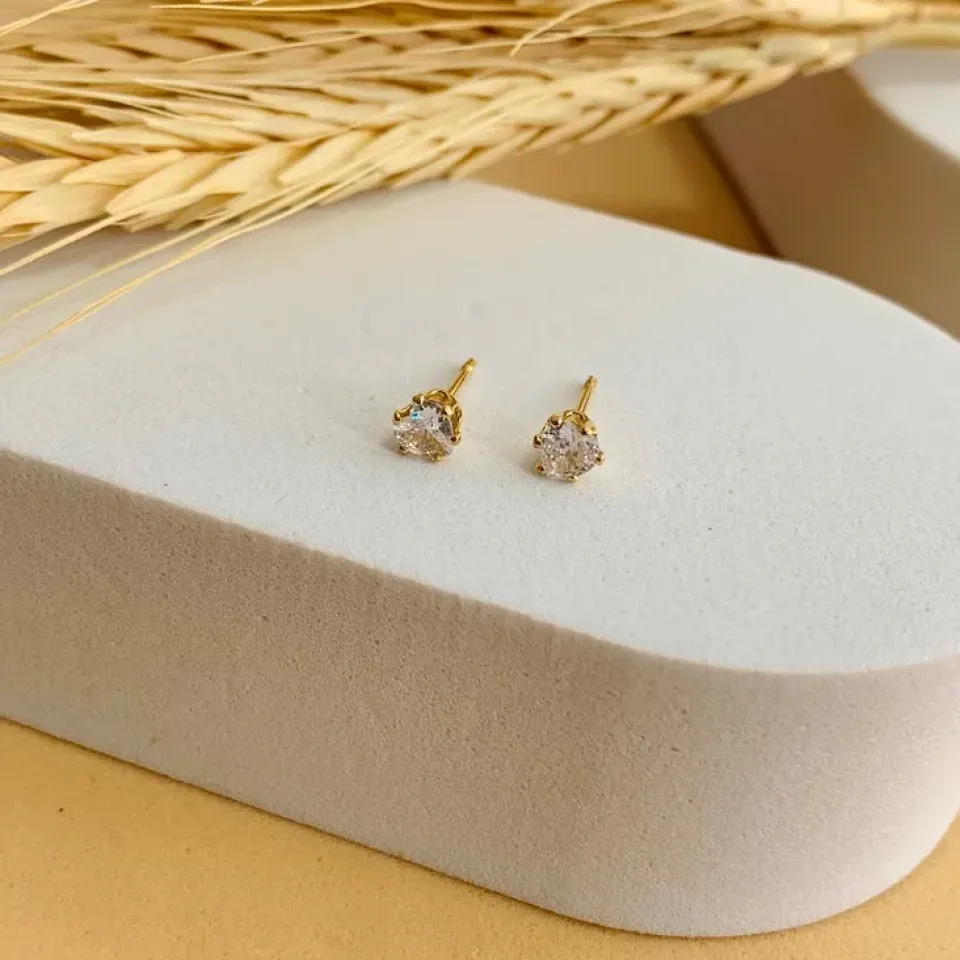 Brinco flor em zircônia com pérola shell...