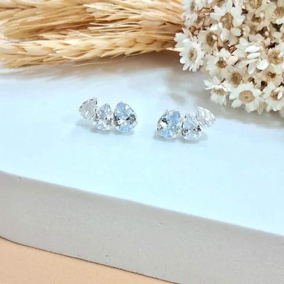 Brinco flor em zircônia com pérola shell...
