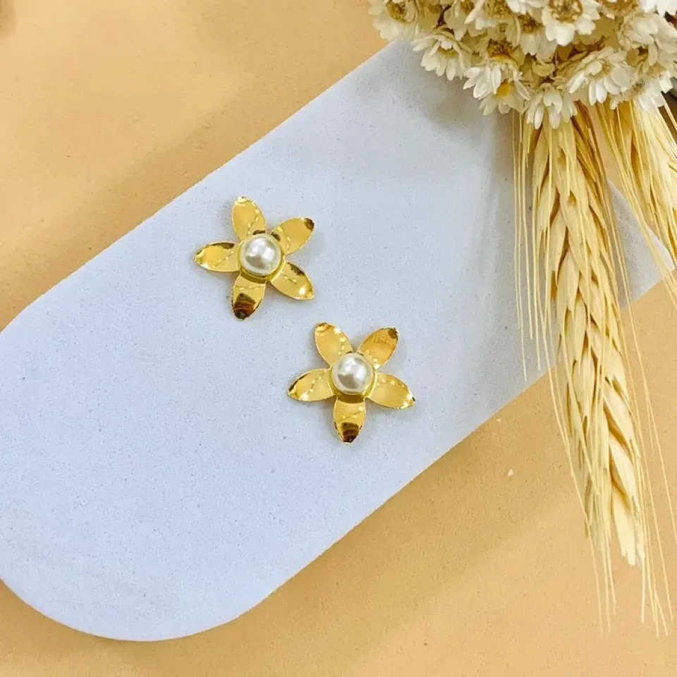 Brinco flor em zircônia com pérola shell...