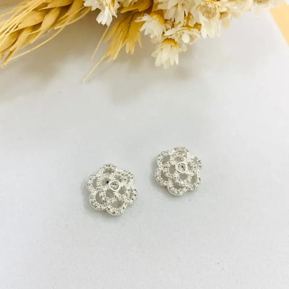 Brinco flor em zircônia com pérola shell...