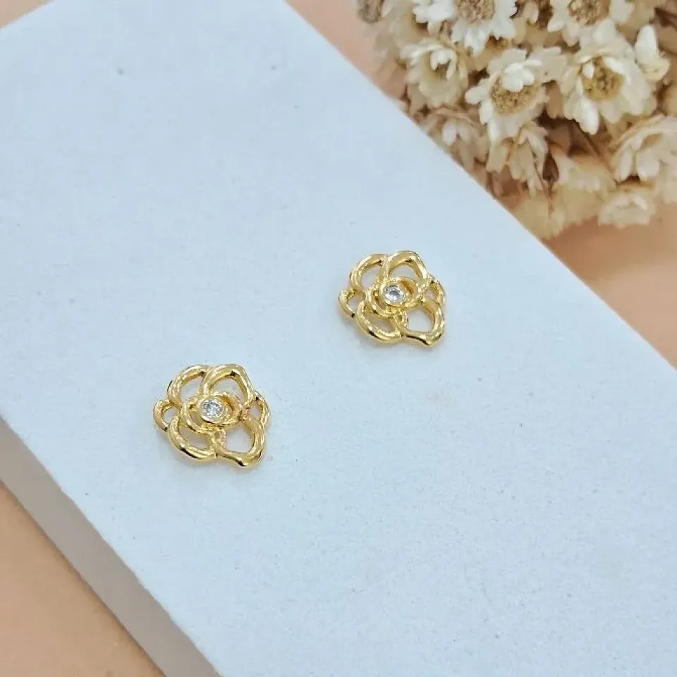 Brinco flor em zircônia com pérola shell...