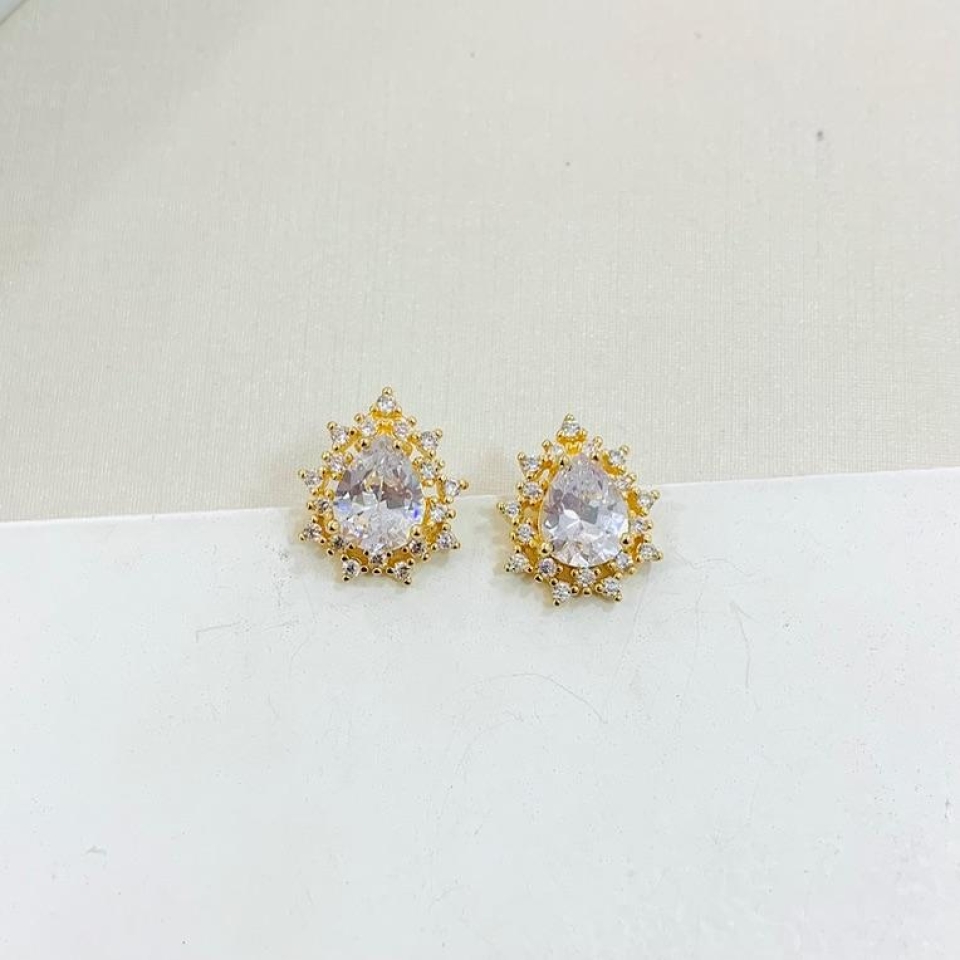 Brinco flor em zircônia com pérola shell...