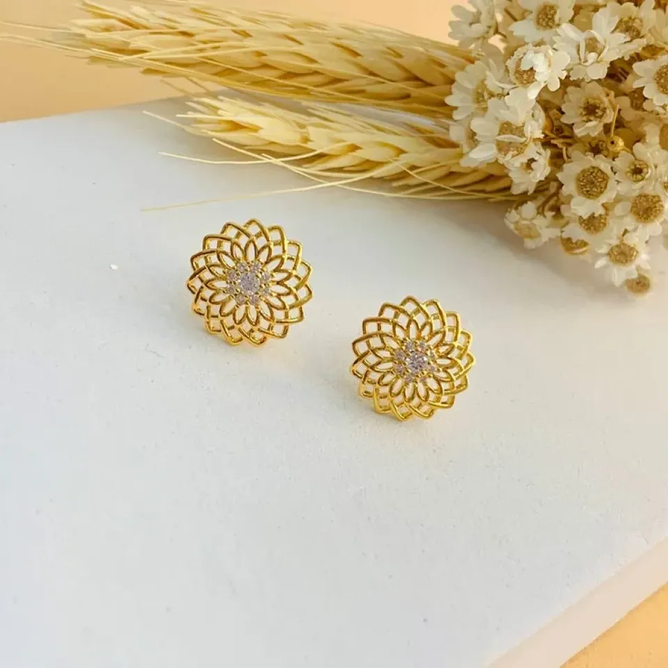 Brinco flor em zircônia com pérola shell...