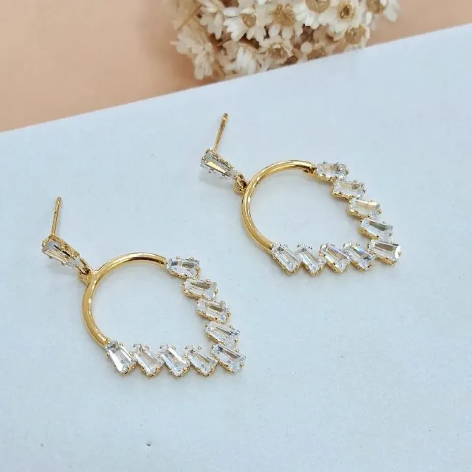 Brinco flor em zircônia com pérola shell...