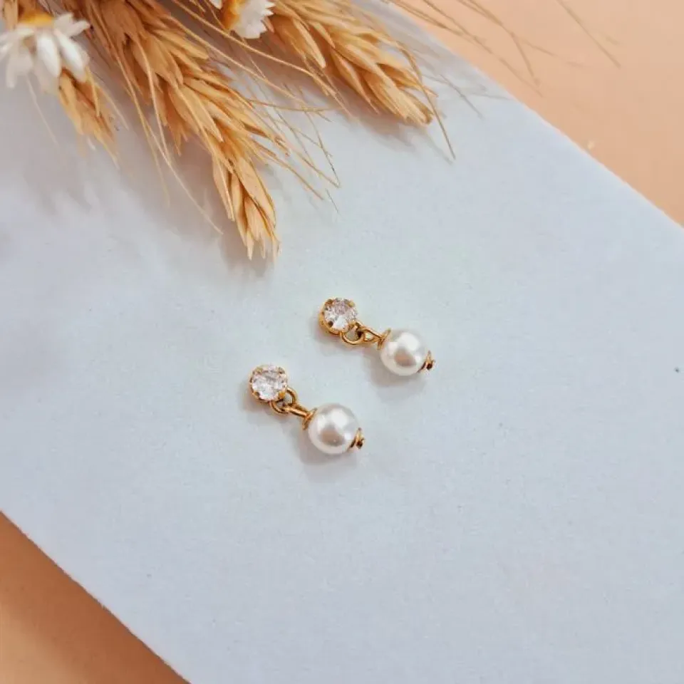Brinco flor em zircônia com pérola shell...