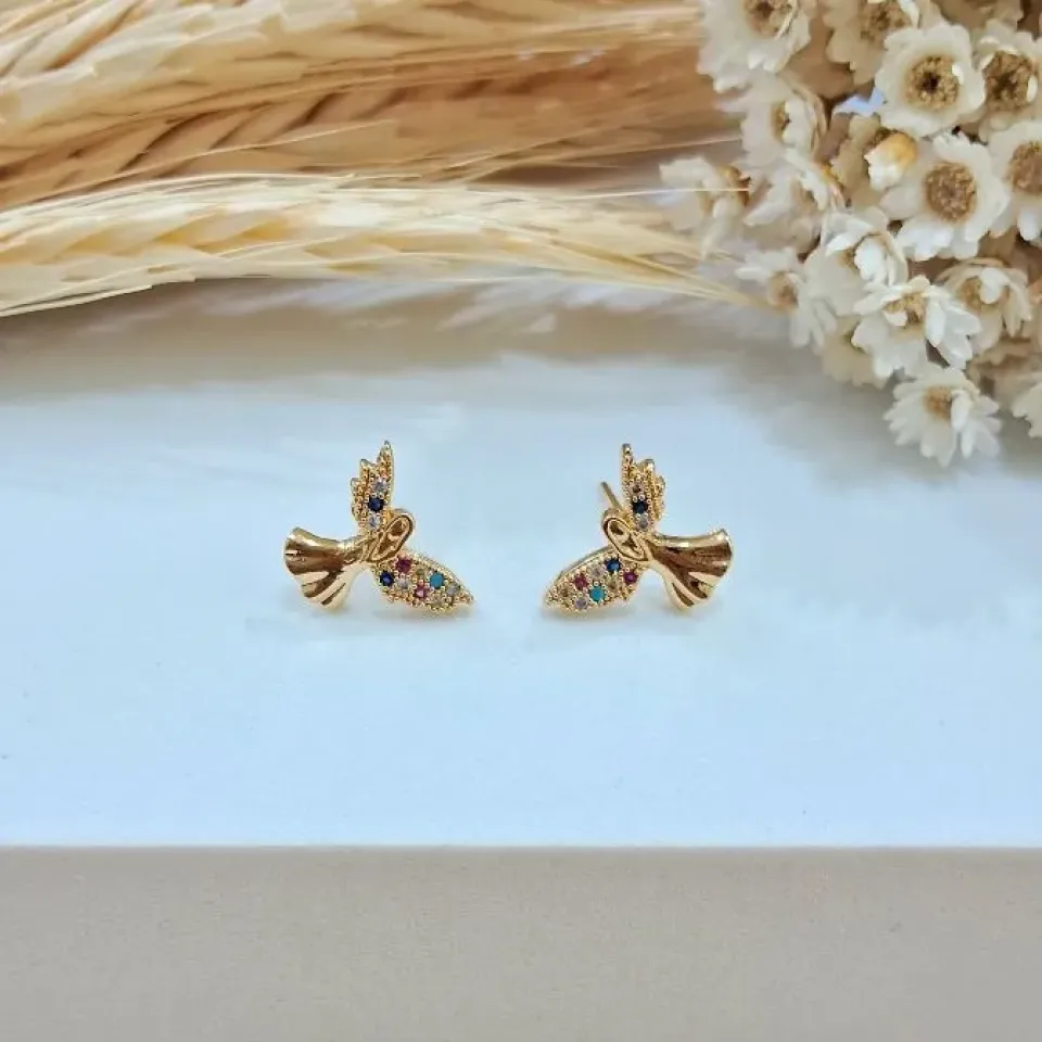 Brinco flor em zircônia com pérola shell...