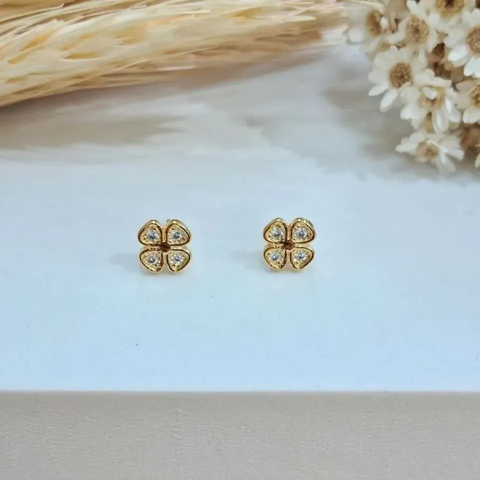 Brinco flor em zircônia com pérola shell...