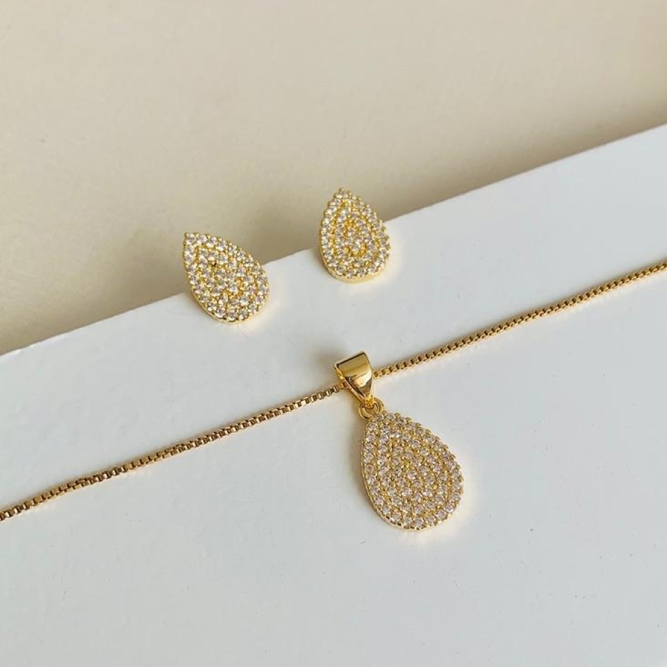 Conjunto cereja lisa com zircônia...