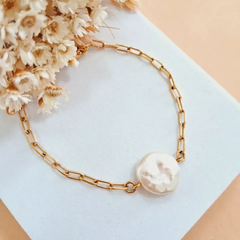 Pulseira luxo 2 pérolas g e m elo grumet...