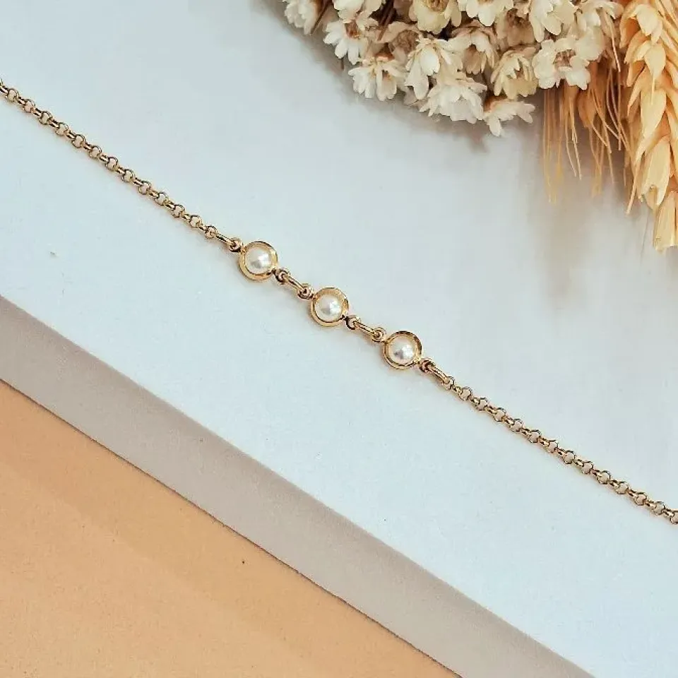 Pulseira luxo 2 pérolas g e m elo grumet...