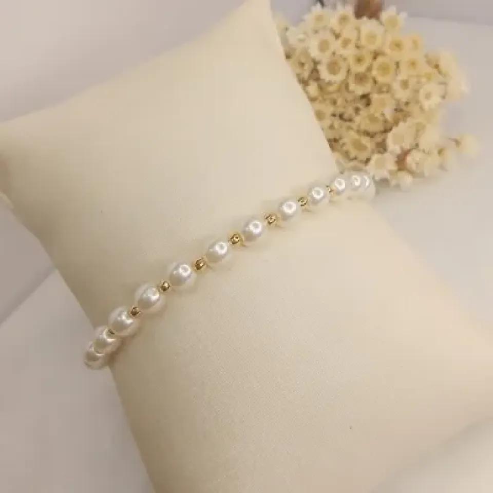 Pulseira luxo 2 pérolas g e m elo grumet...