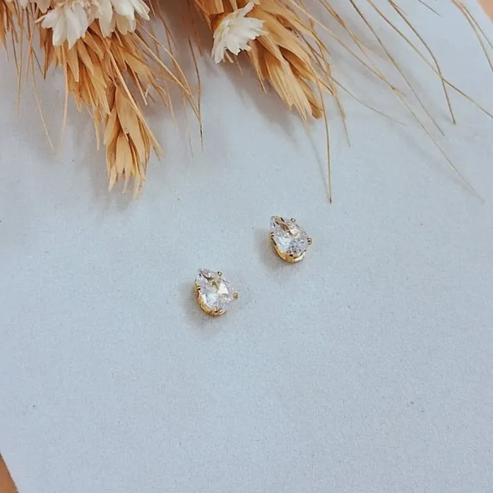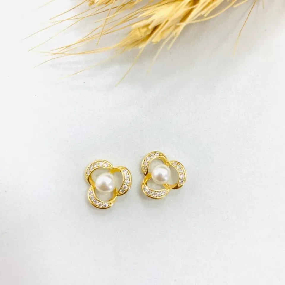 Brinco flor com pérola e zircônias...