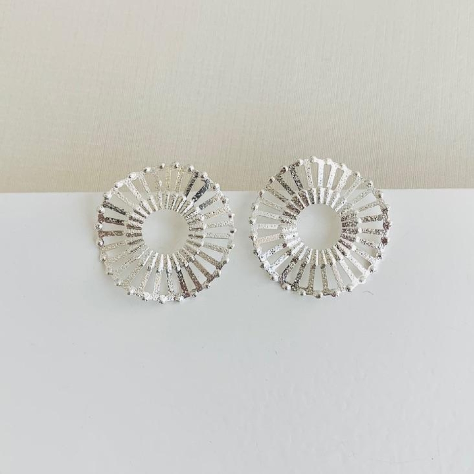 Brinco redondo diamantado prata...