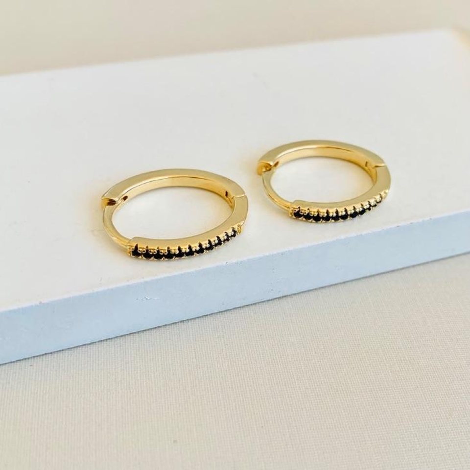 Argola micro zirconias pretas...